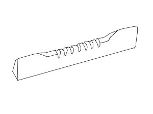 The bridge is located in the very centre of the sound box, between the neck cavity and the base. I created a bridge as per this drawing to place in the centre. Above and below the bridge I drilled 4 holes based on an average diametre from the extant Trossinger Lyre. These were placed in a similar location to the extant version, which likely had the bridge from the original placed there as well. I aimed for a mathematical average of the space between the hand hole and the base of the lyre, in the very centre.
